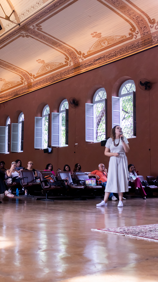 Uma prática de meditação em grupo foi um destaque, proporcionando momentos de descompressão, e que apresentou essa possibilidade de autocuidado para muitos desses corações, sendo um importante incentivo a esse olhar cuidadosos consigo mesmas(os).