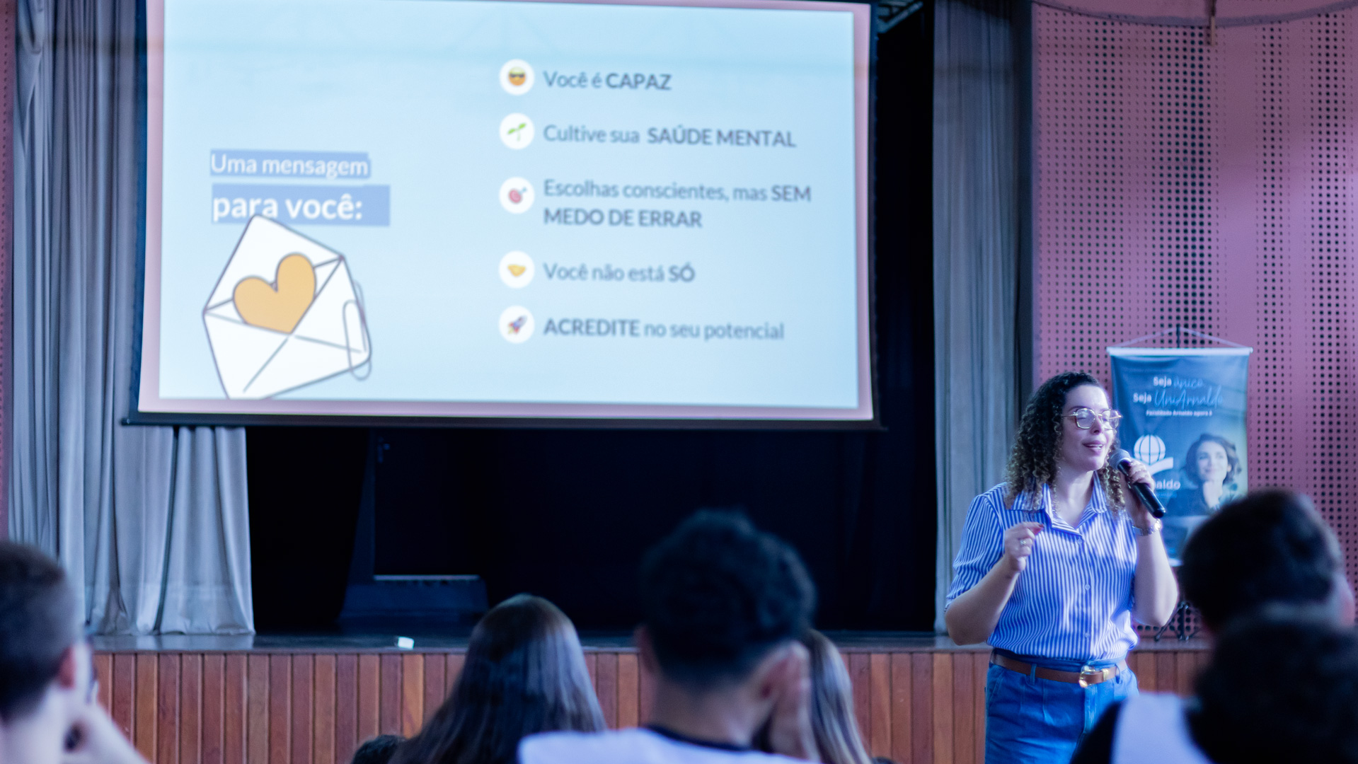Foi um momento de troca que me emocionou muito! Estar com esses corações nessa fase tão especial e, poder contribuir com a jornada de cada aluna e aluno ali presentes só consolida minha escolha pela Psicólogia. Foi um privilégio estar com vocês!